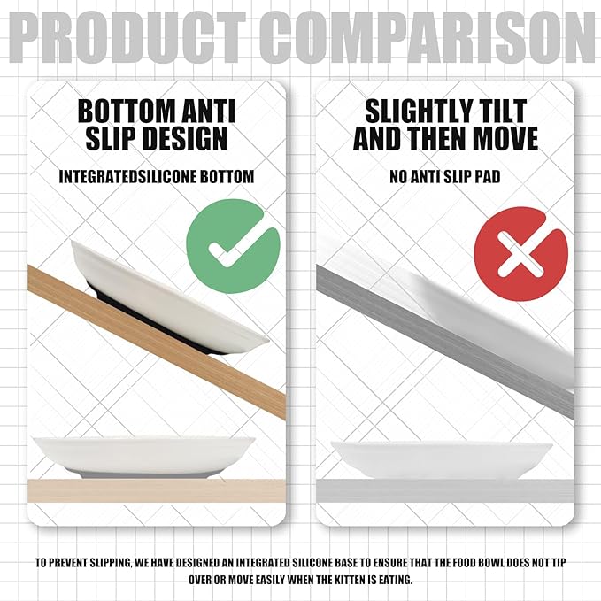 - Easy to Clean : Ceramic cat dishes are easy to clean and only need to be rinsed with water (due to the silicone anti slip pad design at the bottom of the bowl, it is not recommended to use a dishwasher, microwave, etc.)