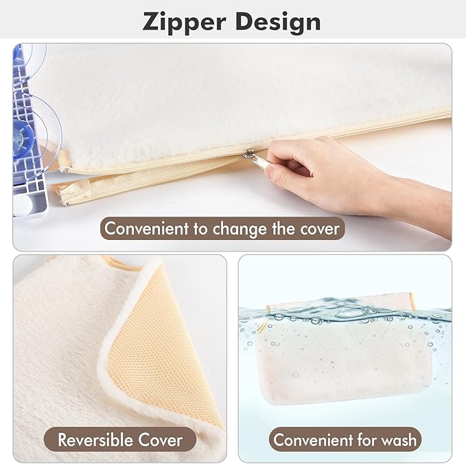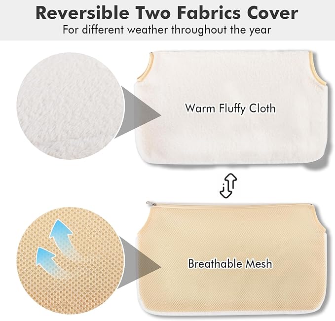 - Reversible Two Fabrics Cover:One cat bed comes with a cover made of two different kinds of fabrics. You can change the cover at any time to adapt to different seasons and different room temperature. One is breathable sandwich mesh, which can help dissipate heat. Another is soft faux rabbit fur plush, which helps keep warm. Both of them are bite and scratch resistant, with no chemical smell. Cats can freely amuse themselves in this comfortable bed. The cloth cover is also removable for wash.