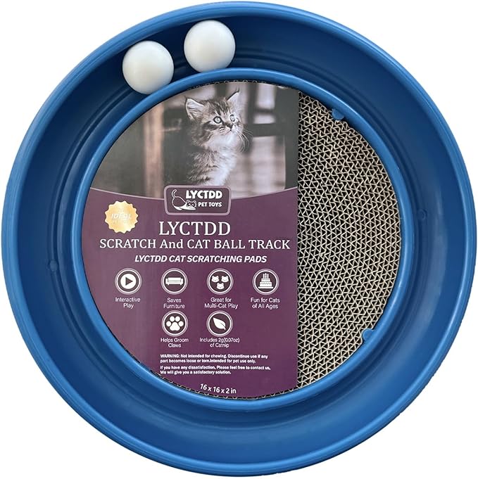 - 【Cat Scratching Board Set】:The round cat scratcher toy comes with 1 cat ball track base (16 inches in diameter),Toys for all kinds of big and small cats,1 round cat scratcher refill (11 inches in diameter),2 rolling cat toy balls,Preventing Loss,that keeps your cat entertained for hours.