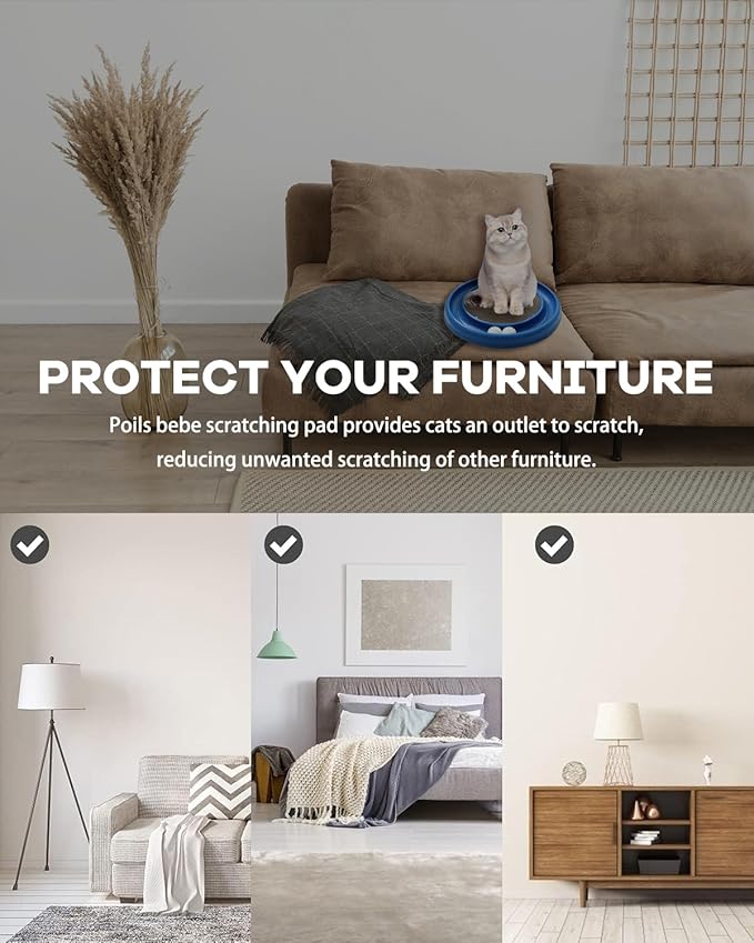 - 【Reversible Scratching Pad】: The center of the cat toy with a replaceable scratching pad. Satisfy your cat's natural scratching instincts and exercise for your cat while reducing potential furniture damage.Besides Maximize the life of the scratcher by flipping it over for a brand new scratching surface.
