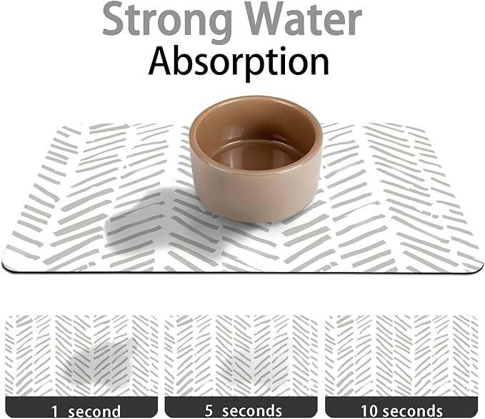 - Absorbent & No Stains: The pet food mat made of high quailty material can absorb spilled water in just a few seconds and leaves no stains. The dog bowl mat provide a dry clean eating area for your puppy.