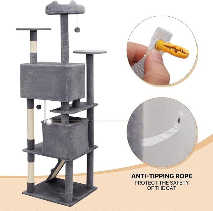 - Multi-Level Fun - Cat tree with multiple levels for endless fun. Features cozy perches, spacious houses, and a variety of platforms for your feline friends to explore, lounge, or nap.