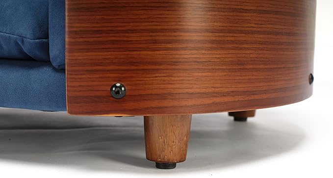 HomSof 30.7" Scandinavian Style Elevated Dog Bed Pet Sofa with Solid Wood Legs and Bent Wood Back,Velvet Cushion,Mid Size,Navy+Brown