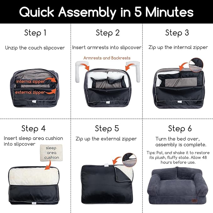 - Assemble Tips - The Hollypet cat bed will arrive as a vacuum-packed bed in a box, please carefully unpack the cat sofa couch, then pat and rub the compressed areas to make sure the filling is completely fluffy and wait 48 hours before using the pet bed