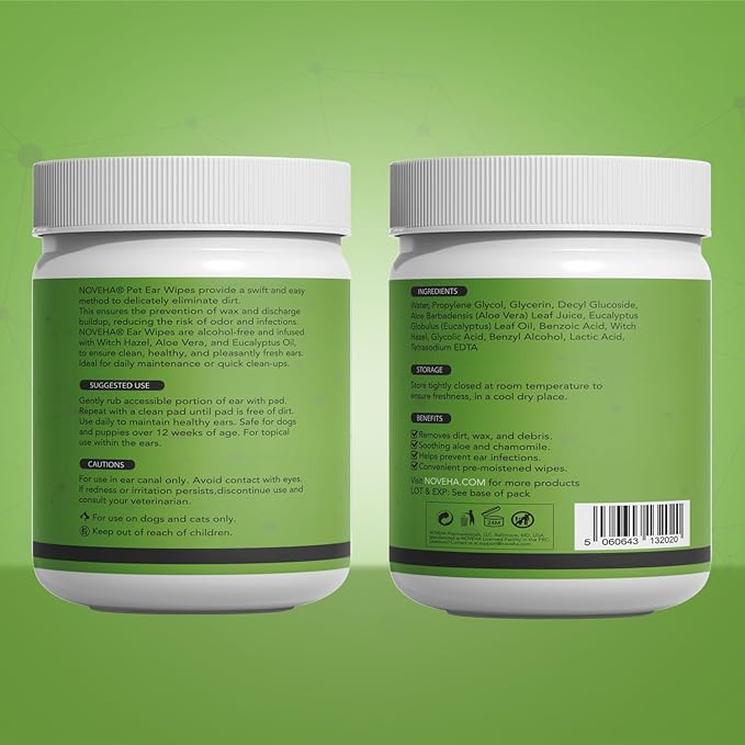 - 👩⚕️ ADVANCED RECOMMENDED FORMULA - NOVEHA Dog Ear Wipes boast an advanced formula. Safe for dogs and cats, your pets are in the best hands with our top-tier ear care solution.