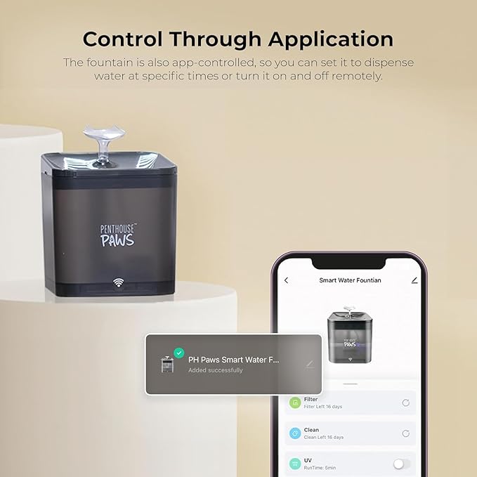 - Smart WiFi App Control, Anytime, Anywhere: Connect via the Penthouse Paws app to control water flow, schedule hydration times, and monitor water levels from your phone, ideal for busy pet parents.