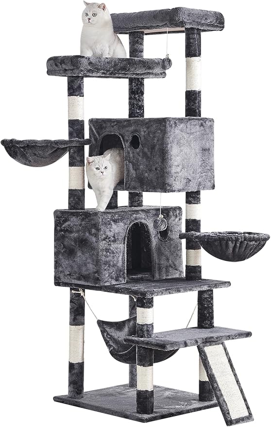 Cat Tree for Indoor Cats Large Adult, 66.9 Inches Multi-Level Tall Cat Tower with Sisal Scratching Posts, Large Plush Perches, Spacious Condos, Baskets, Hammock & Scraping Ladder (Dark Gray)