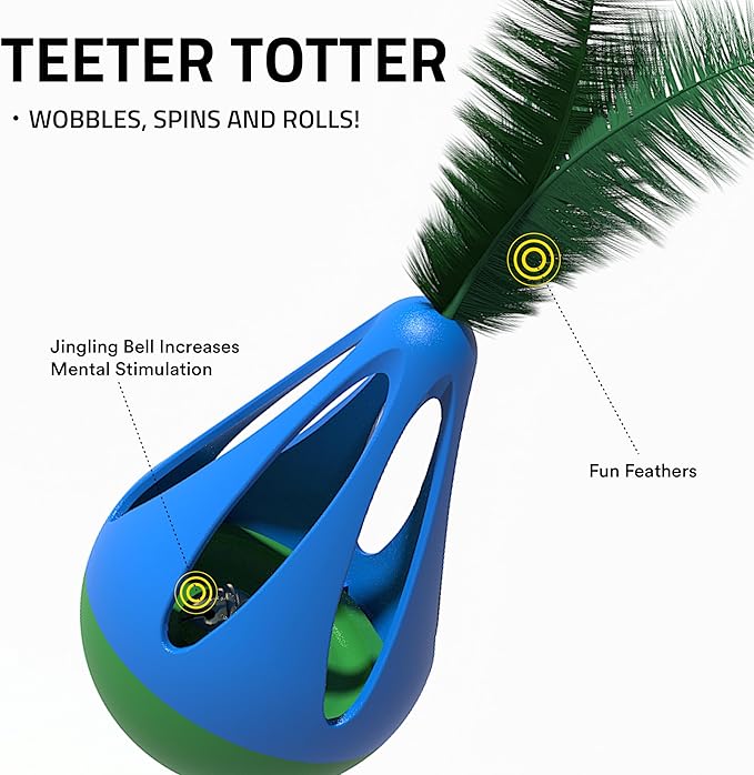 - MEET THE TEETER TOTTER TOYS WITH FEATHER TOP: Featuring a tear-drop shaped body with a jingling bell inside, this is the toy your cat's been waiting for! Designed with feathery features and unpredictable movements for hours of endless swatting play and fun.