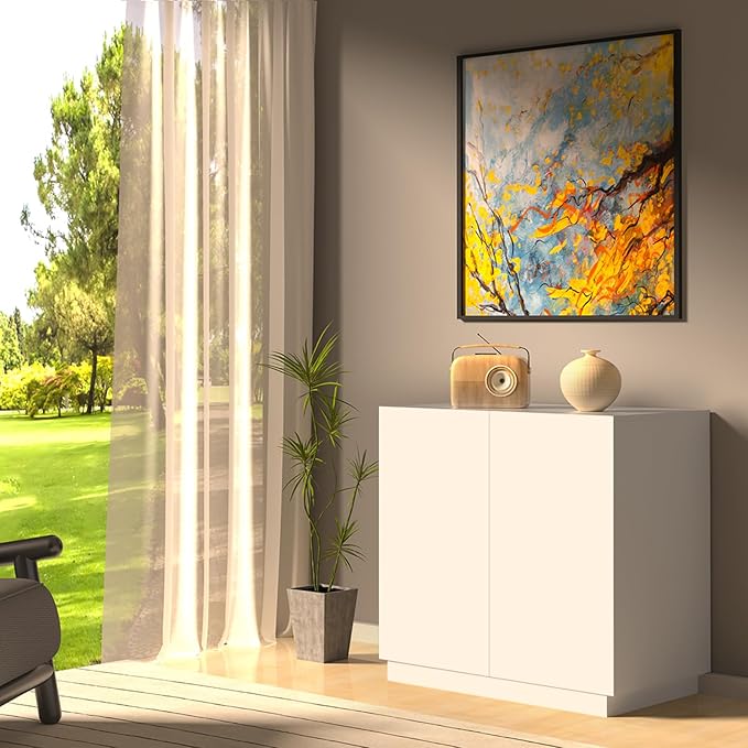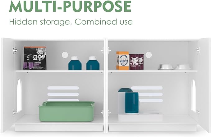 Large/Tall Litter Box Enclosure, Modern Wooden Litter Box Furniture for XL Litterbox with Hidden Storage as Sideboard Cabinet (White)