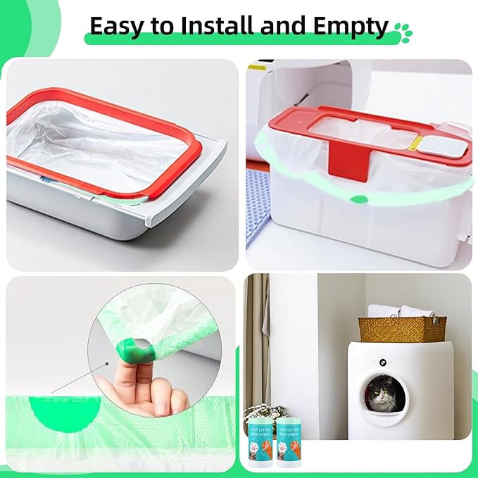 - WITH DRAWSTRING: Self-cleaning cat litter box liner bags come equipped with robust drawstring handles for effortless disposal. Simply grab the drawstrings, lift, and the bag securely seal shut, preventing any spills or odor. You won't have to worry about dirtying your hands in the process
