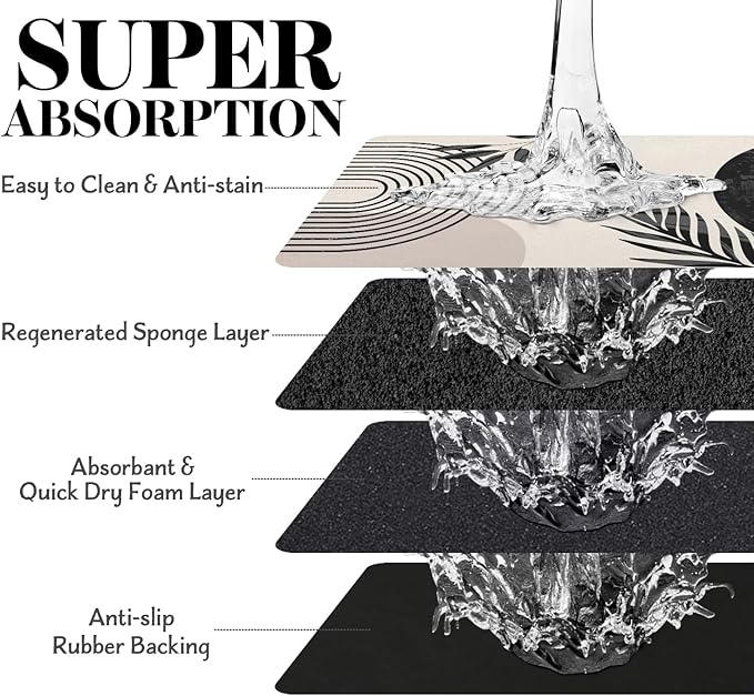 - Super Absorption: The diatomaceous earth dog mat for water bowl can absorb spilled water without leaving traces and dry quick, avoid wetting pet paws even for messy drinkers. And it does not attract pet hair like traditional silicone dog bowl mat.
