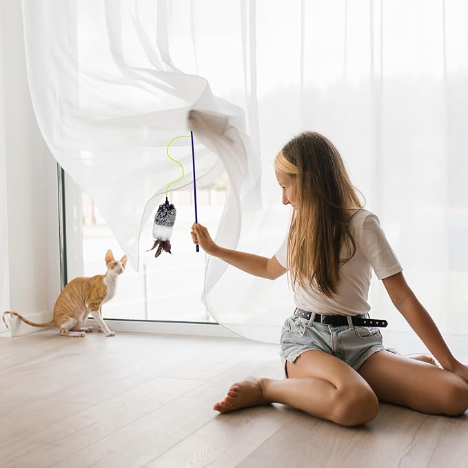 - Interactive cat toy! Strengthen your bond with your cat through interactive play! Our cat wand encourages healthy cat exercise to combat boredom, fostering a deeper connection with your pet. Surely one of the enjoyable cat toys you will own.