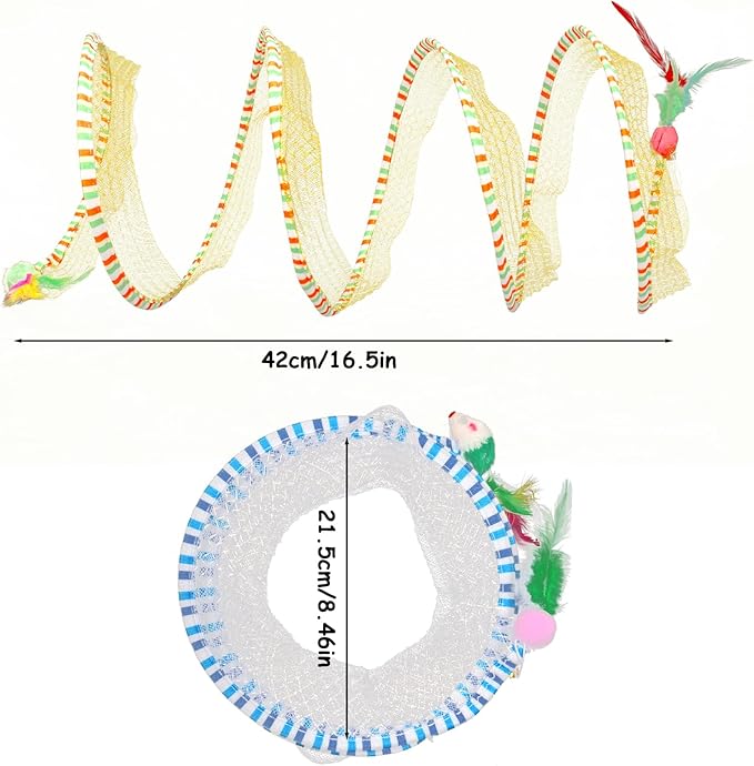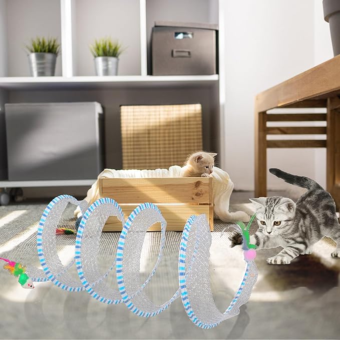 - Keep Your Pet Active: Fun toy for cats to play, our kitty tunnel offers the most interactive fun with the plush and feather toys on the exits and import, truly a great way to encourage daily exercise and keep your pet active. Provides hours of exercise & self-amusement