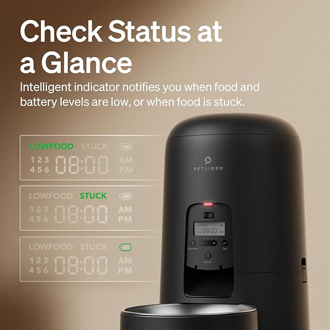- Prevents Pesky Paws from Stealing - The press-to-lock top lid of the PETLIBRO auto cat feeder features a spring design that can be easily opened/closed with a simple press. When the feeder is not in use, the top lid keeps the food tank tightly locked to prevent pets from stealing food. The rotor at the food outlet also stays securely closed when not dispensing food.