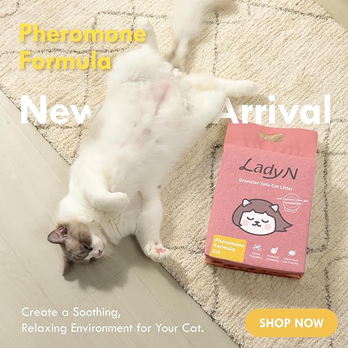 Lady N Cat Attract Tofu Litter – Natural Attractant Formula for Litter Box Training, Calming Pheromone for Multi-Cat Homes, Granular Mini-Pellet Shape for Self-Cleaning Box, 18lb