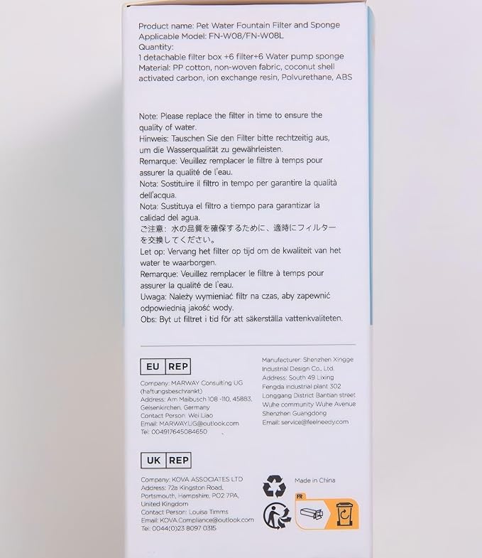 - Compatible Fountain: The cat water fountain filters are compatible with FEELNEEDY cat water fountain FN-W08L and FN-W06