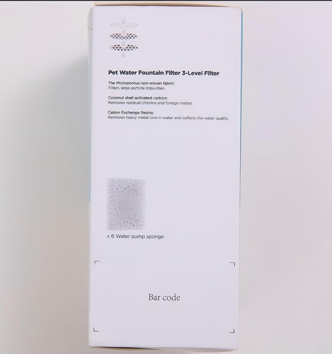 - Fresh Water in Every Sip: Each drop of water undergoes multi-layered filtration: activated carbon for odor removal, ion exchange resin for softening and removing heavy metals, non-woven fabric for capturing hair and impurities, and high-density pump sponge for eliminating fine particles.This ensures a year-round supply of fresh, healthy water for your pet