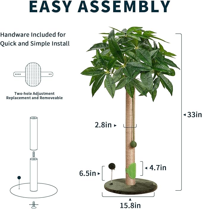 - Decorate & Protect Your House: The money tree leaves can add a splash of green to a variety of different styles of homes, and the faux trunk style cat scratching post keeps your furniture free from cat claw marks