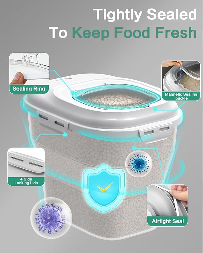 - 【Say Goodbye to Pesky Pests】The multiple airtight seals and secure locking lids offers excellent sealing ensures your pet's food stays fresh longer, free from moisture and pests.