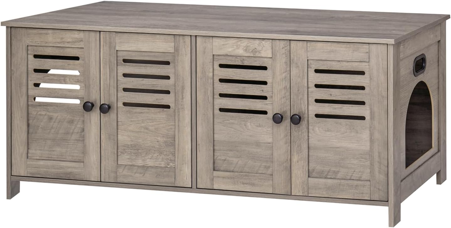 - 【Good Ventilation Is Essential】More than a cat washroom bench, a leisure area and a resting zone for your kitty as well. Louvered doors create low-light environment for sensitive cats to feel safe and secure, allowing cats to enjoy fresh air and soft light while resting and playing