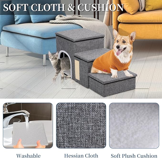 - 🐾【Practical & Stylish】: The dog ramps boast two storage space, perfect for neatly organizing pet toys, diapers, snacks, and more. Allowing your home to stay clean and tidy all the times. It's not only practical, but the stylish gray exterior complements your modern home decor!