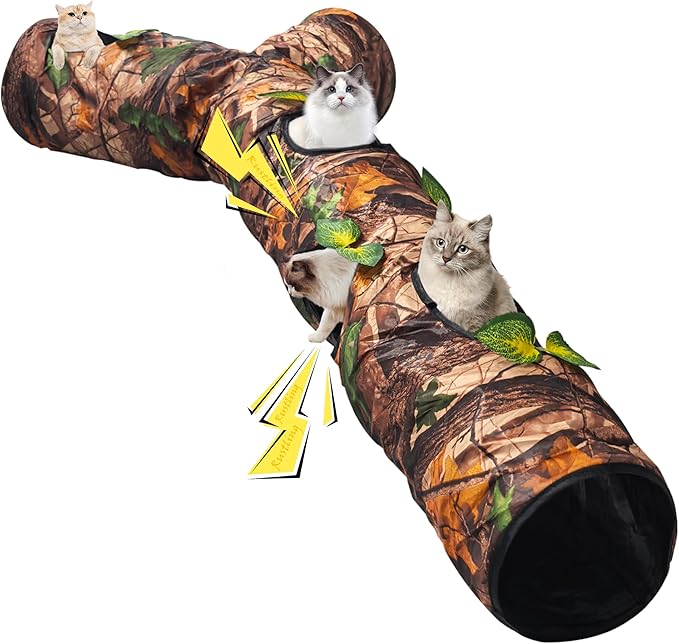 - 🐈【Crazy Toys】The cat tunnel imitating tree trunk toys makes animals obsessed and crazy, the cat tunnel is made of polyester double-layer fabric, not easy to tear, supported by high-strength steel frame, with protective layer at the end