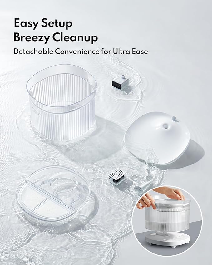 - 20-Second Disassembly for Easy Cleaning - Cleaning is a breeze with our fully detachable design—pump, tank, and base separate in just 20 seconds. No more unplugging cords or scrubbing hard-to-reach corners. Keep your cat’s water fresh and hygienic with minimal effort