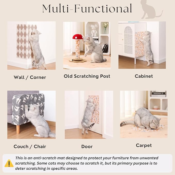 - NOTE: This mat is designed to protect your surfaces from scratching. Some cats may use it as a scratcher, but its primary purpose is to deter scratching in specific areas.