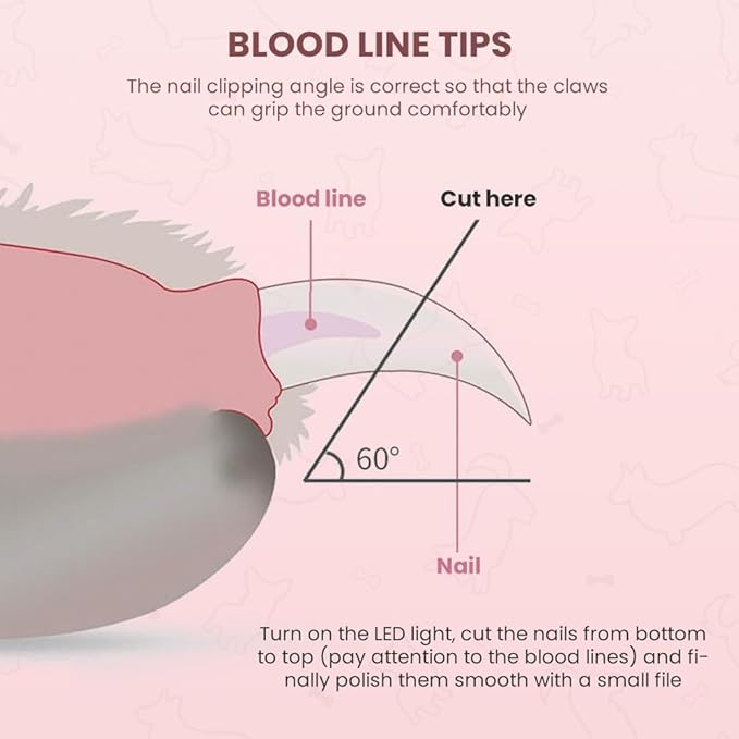 - Professional Designed For Pets:This pet nail clipper with LED light allows your dog or cat to easily enjoy the manicure process!The lightweight pet nail clippers are specially designed for animals such as dogs, cats, and even rabbits. It is comfortable and easy to hold. The half-moon design is more suitable for the shape of pet nails. It is a professional pet nail trimming tool.