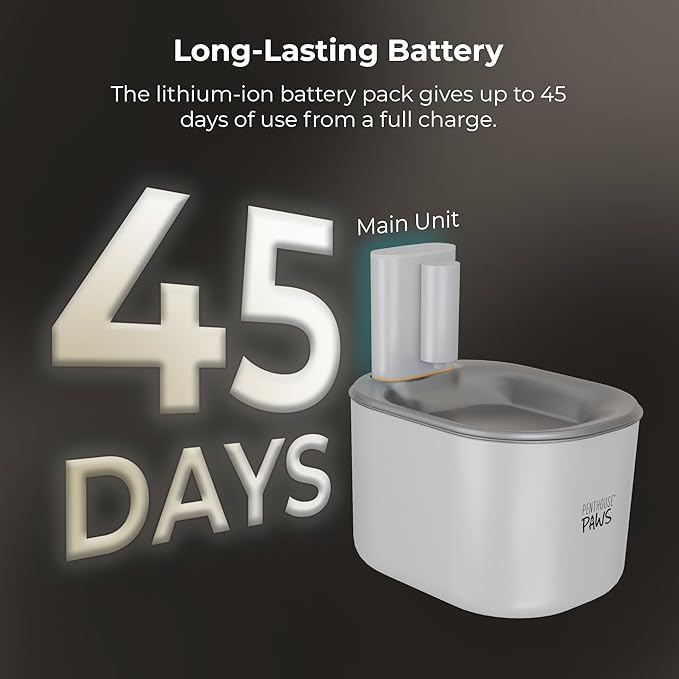 - Whisper-Quiet & Motion-Activated: Smart Sense Mode activates the fountain only when your pet approaches, conserving battery life and filter usage. Runs at just 23 dB, making it ideal for noise-sensitive pets.