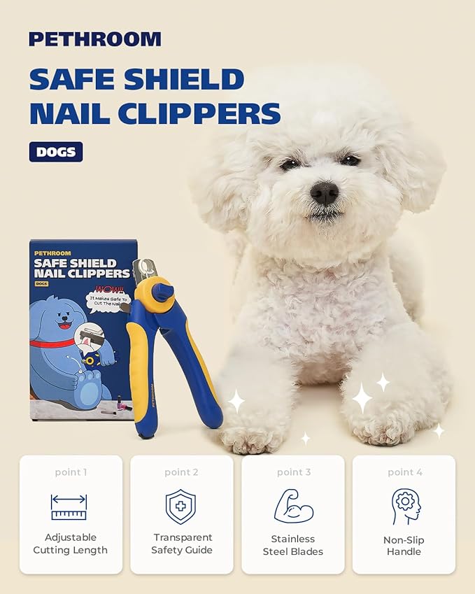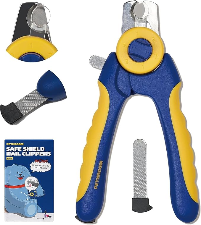 PETHROOM] Professional Dog Nail Clipper with Transparent Guard & Nail File | Adjustable Cutting Length (1-3mm) Sturdy, Durable Stainless Steel Blade | Nail Trimmer for Pets Avoid Overcutting