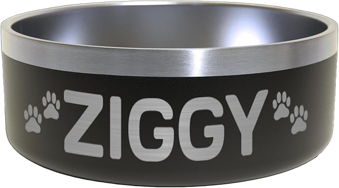 Custom Dog Bowl with Paws and Name - Engraved, Nonslip, Personalized, Custom Cat Bowl, 304 Stainless Steel, Feeding, Pet Supplies (Black, Medium -32oz)