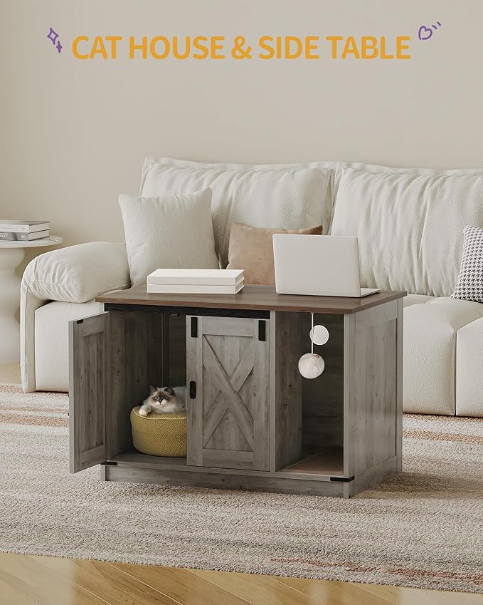 - The Perfect Blend of Family: This rustic style and unique barn door shaped litter box cabinet can be used as a cat litter box or as a finished cat house, giving your cat a comfortable home