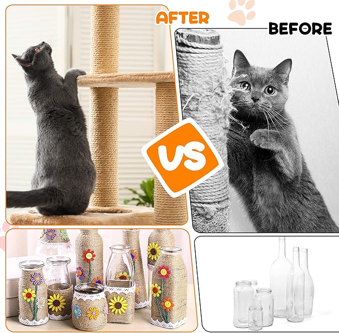 - Simple Setup: Wrap the 6mm/1/4 inch jute rope around surfaces like cat trees or furniture legs and secure with glue for a hassle-free, sturdy cat scratching solution that your feline friends will love