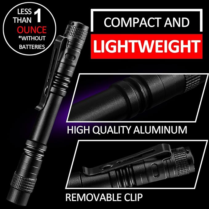 - MULTFUNCTION: Our uv light flashlight is compact enough to fit or clip in your pocket, backpack, easy to storage. Suit for walking, outages, general purpose, everyday carry, emergency, backup light source, boating, camping or indoor use for home, car etc.