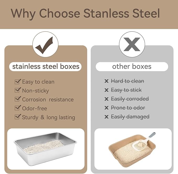 - HIGH QUALITY STAINLESS STEEL:GOLDENKEY's litter box stainless steel is crafted from premium materials, ensuring durability and longevity