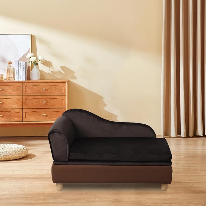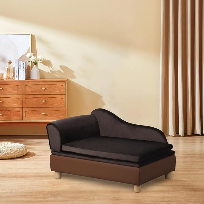 Pet Bed Sofa, Puppy Bed with Storage, Small Dog Couch with Removable & Washable Cushion, Comfy Pet Couch Bed for Cats & Puppy (Brown)