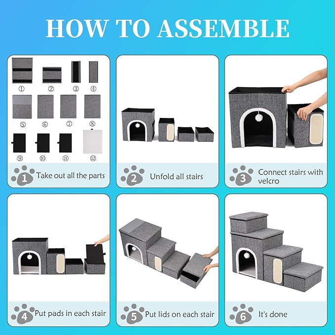 - 🐾【Cozy Condo & Storage Boxes】: Designed with a spacious condo and soft plush cushion, your puppy or kitten can sleep comfortably inside. And the furry door is soft and cute, allowing them to enter and exit smoothly without friction. Besides, It also provides storage space for convenient storage of pet toys, diapers, snacks, and other items, allowing your home to stay clean and tidy at all times.