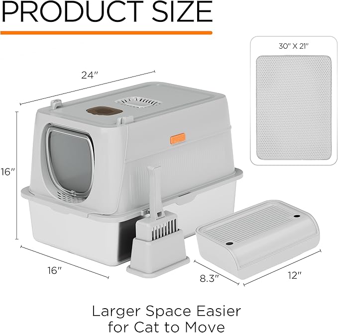 - Extra Large Cat Litter Box --The XL cat litter box provids a spacious space for big cats while being suitable for cats of all sizes, measuring 24 x 16 x 16 inches. It provides ample space and can hold up to 40 liters of cat litter, sufficient for an adult cat for 30 days. This means you can go to work or travel without worrying about changing the cat litter