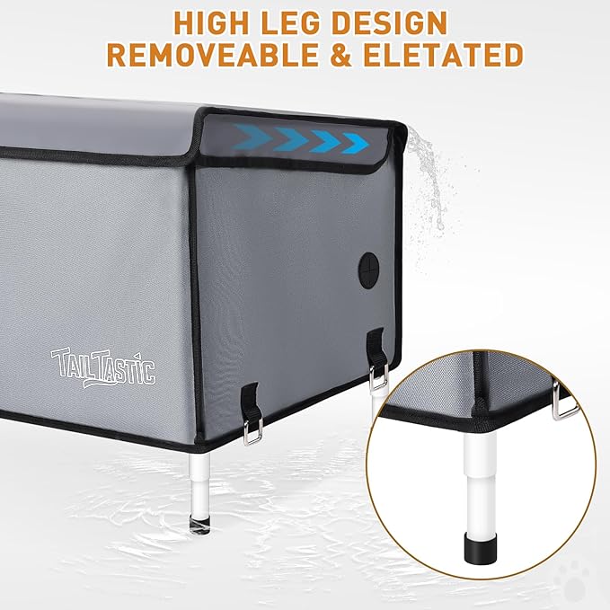 - Removeable Elevated Design: Equipped with a flexible elevated platform and six ground stakes, our cat house outdoor effectively prevents water accumulation while boosting wind resistance, creating a dependable shelter for your beloved pets
