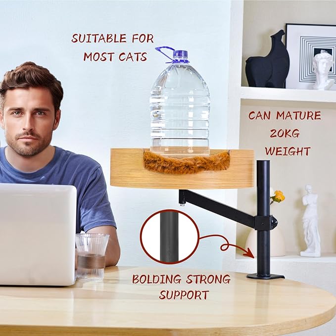 Cat Bed Desk with Pet Mat, Cat Hammock for Desk, Cat Bed Desk with Wooden Bowl, 360° Rotation and Adjustable Height, Brown