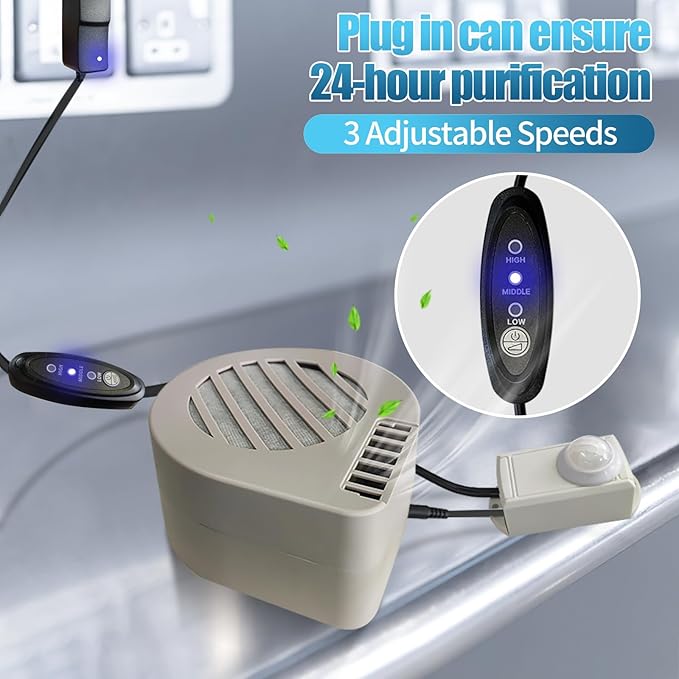 - 🍃𝗔𝘂𝘁𝗼 𝗢𝗻/ 𝗢𝗳𝗳 - The infrared sensor controls the cat litter odor eliminator to turn off when the cat approaches automatically and to continue working automatically when the cat leaves.