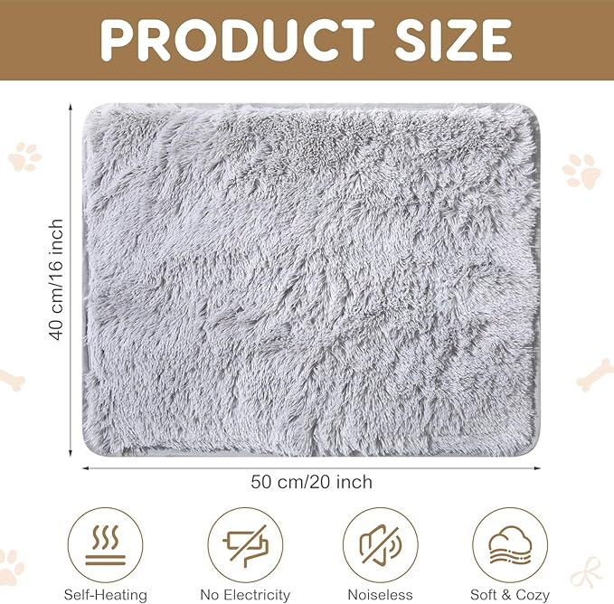 4 Pack Self Warming Cat Bed Pad Self Heating Dog Mat with Fluffy Faux Fur Plush Cat Calming Bed Thermal Mat Washable Pet Pad Anti Slip Bottom for Outdoor Indoor Pets(Grey,16" X 20")