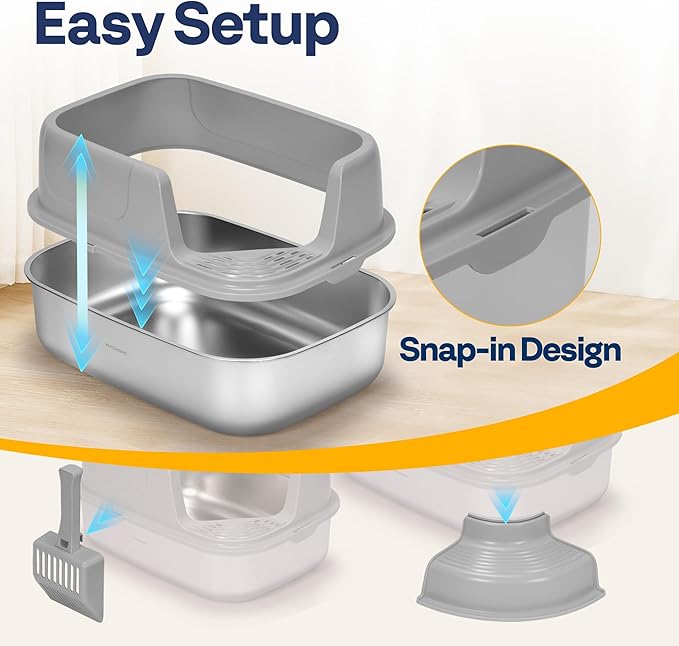 - EASY SETUP WITH SECURE FIT: The snap-in design ensures the cover and footboard remain securely attached, preventing any leakage of litter or urine; Non-slip feet add stability on any floor, and the assembly process is straightforward for hassle-free use