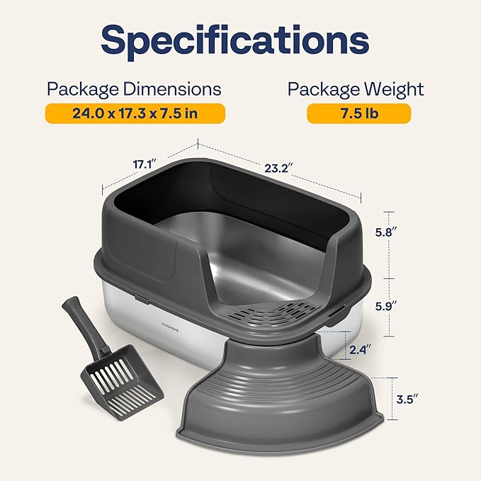 VIVOHOME XL Stainless Steel Cat Litter Box with Cover and Steps, 23'' x 17'' x 12'' Large Metal Litter Box for Cats with Scoop, Easy to Clean, Non-Slip, Ideal for Big or Multiple Cats, Dark Gray