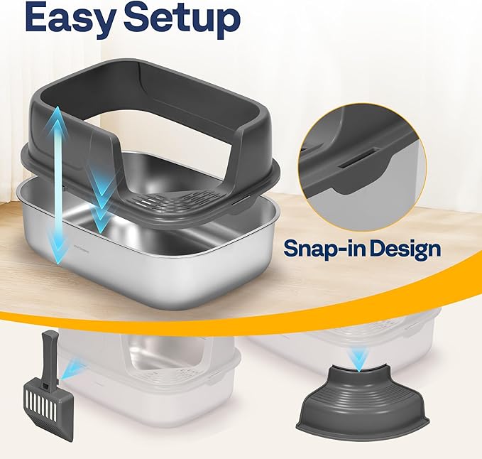- EASY SETUP WITH SECURE FIT: The snap-in design ensures the cover and footboard remain securely attached, preventing any leakage of litter or urine; Non-slip feet add stability on any floor, and the assembly process is straightforward for hassle-free use
