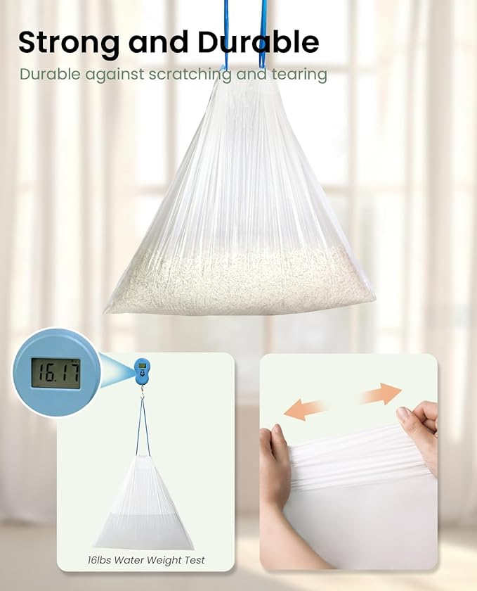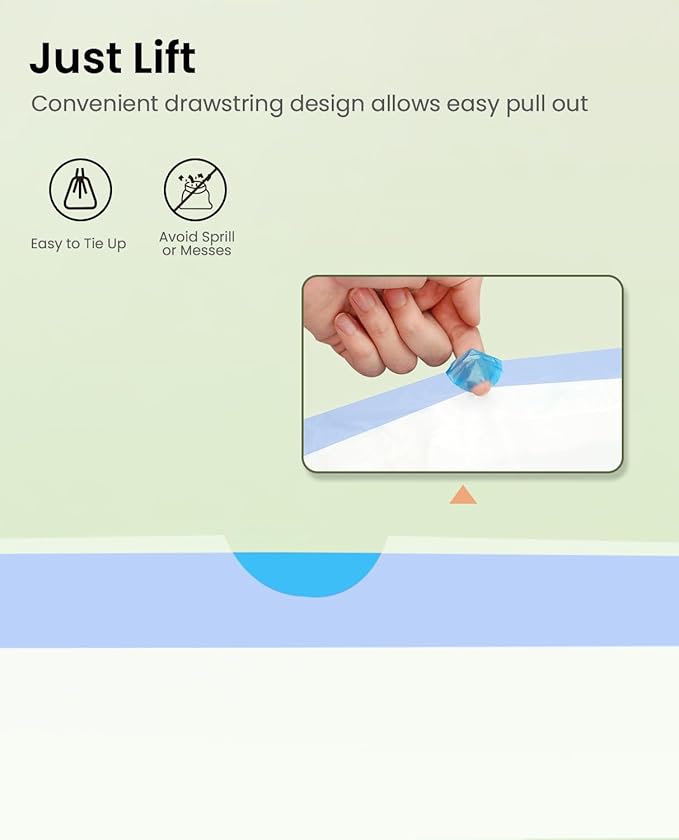 - 【Drawstring Design for Effortless Cleanup】The cat litter liners feature wide, double-layer drawstring handles that make waste disposal a breeze. Simply grab the drawstrings, lift, and the bags will securely close, preventing any spills or mess.