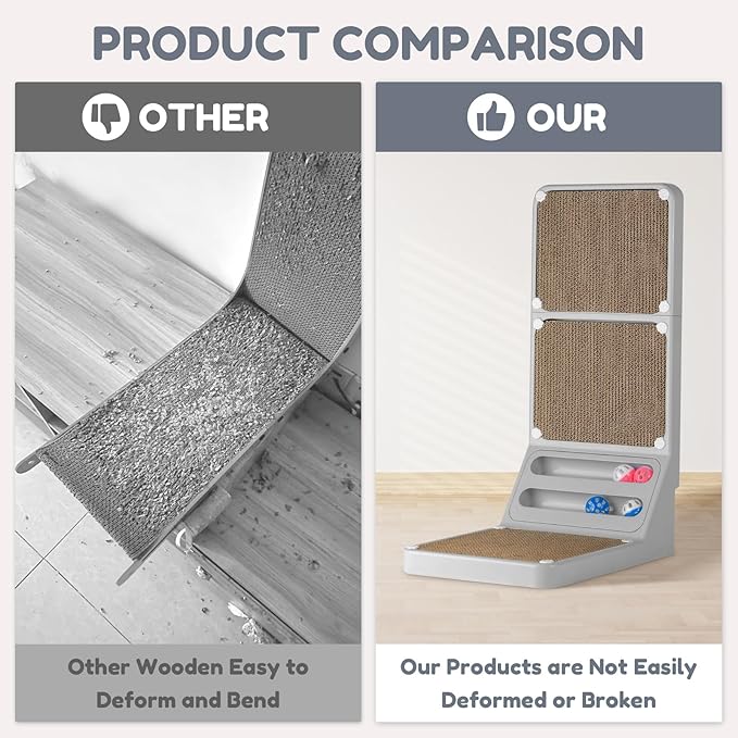 - Perfect For All Cats:Goosheep Giant Cat Scratching Board is designed for large cats and kittens,It also comes with a double track ball design equipped with 4 balls, which can increase the cat's playtime and excitement; put it down against the wall and turn it into a cat's nest in seconds, suitable for all sizes of cats, can be scratched or slept on, and a variety of ways to play are waiting for you to be unlocked.