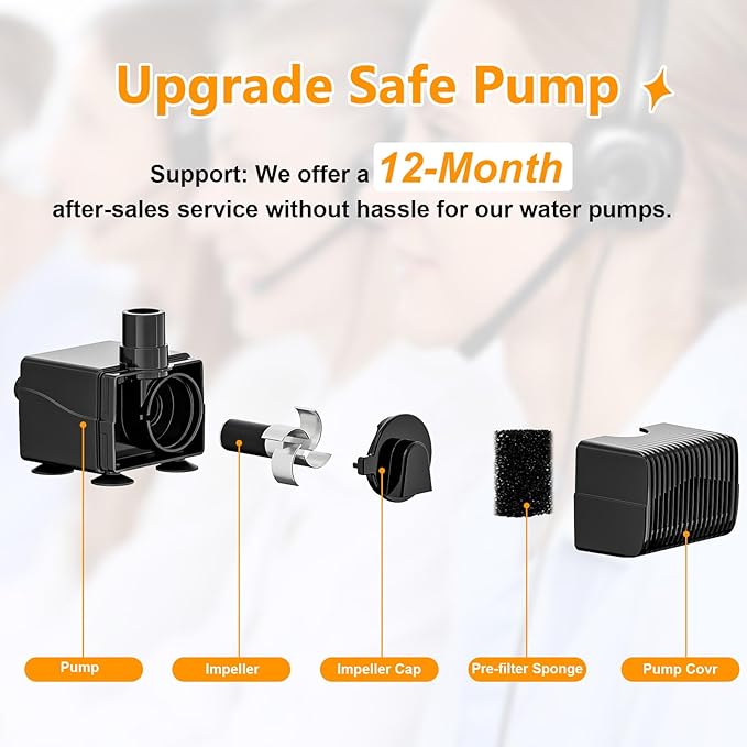 - Water Shortage Reminder: The pump will automatically shut down when water levels are insufficient. For any questions, we offer 12-month following-sales support for the pump