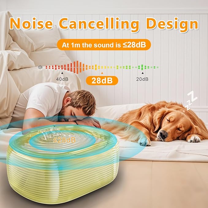 - Quiet Dog Fountain: The water pump operates at under 28dB at a distance of 1 meter, featuring a sustainable design with mild and low-volume flows, allowing dogs to drink peacefully without disturbing other household members